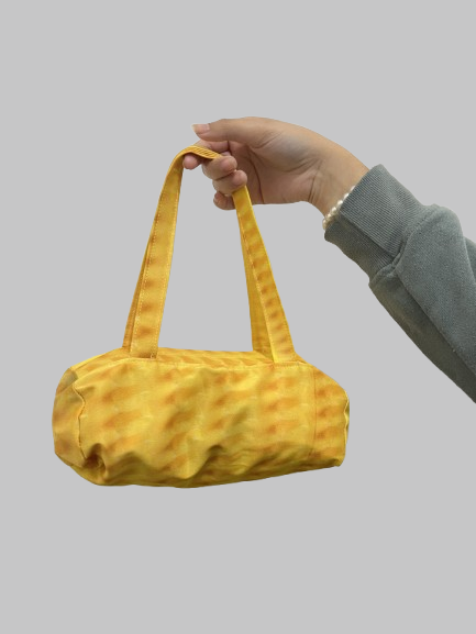 Fabriquée à partir des mêmes bâches événementielles souples et recyclées que notre sac Elyra, elle offre une nouvelle vie à des matériaux chargés de souvenirs, transformés avec soin et créativité.